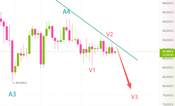 波浪理論圖解目前市場運行在空頭的5浪2橫盤整理之中,市場一旦打破86000,后面將迎來一波3浪行情,具體的數據和分析看下面的波浪理論視頻: