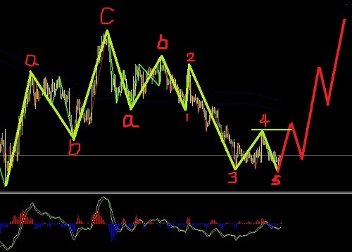 白銀在走了一個一波流的空頭下來之后進入了復雜的調整,然后在這里又出現了一個沒有新低的朝五,這里后面有2種模型,如果市場按波浪理論圖解中所示破了小高點暫時放棄做空,…四月 20th, 2012 2 人評論